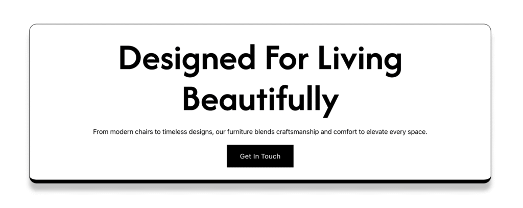 {"id":6097,"name":"furniture-cta-section","title":"Furniture CTA Section","date":"2026-02-13 15:04:20","date_formatted":"February 13, 2026","author":{"name":"AK_Developer_25","avatar":"https:\/\/secure.gravatar.com\/avatar\/4895fa216fc2f1ee16e6575899e50eb2388264a879a9791a3ad02c7bed840715?s=60&d=mm&r=g","url":"https:\/\/gallopbiz.in\/ak-dev"},"permalink":"https:\/\/gallopbiz.in\/ak-dev\/template\/furniture-cta-section\/","thumbnail":null,"bundles":[],"tags":[],"type":"section","content":[{"id":"b198b8","name":"section","parent":0,"children":["d1bdb5"],"settings":{"_cssGlobalClasses":["zmcijy","edtnnh"]},"label":"Furniture CTA Section"},{"id":"d1bdb5","name":"container","parent":"b198b8","children":["379f0f","ed066a","15131a"],"settings":{"_cssGlobalClasses":["oorplp","jseter"]}},{"id":"379f0f","name":"heading","parent":"d1bdb5","children":[],"settings":{"text":"Designed for Living Beautifully","tag":"h2","_cssGlobalClasses":["acss_import_text--center","gowwxl"]}},{"id":"ed066a","name":"text-basic","parent":"d1bdb5","children":[],"settings":{"text":"From modern chairs to timeless designs, our furniture blends craftsmanship and comfort to elevate every space.","_cssGlobalClasses":["acss_import_text--center","cufdzw"]}},{"id":"15131a","name":"button","parent":"d1bdb5","children":[],"settings":{"text":"Get In Touch","style":"primary","_cssGlobalClasses":["attgqy"]}}],"templateType":"section","global_classes":[{"id":"oorplp","name":"furniture_container","settings":{"_widthMax":"100%","_width":"1240","_rowGap":"20"},"_exists":false},{"id":"acss_import_text--center","name":"text--center","settings":{"_typography":{"text-align":"center"}},"_exists":false,"modified":1765810160,"user_id":1},{"id":"zmcijy","name":"furniture_section","settings":{"_padding":{"top":"8%","bottom":"8%","left":"5%","right":"5%"}}},{"id":"gowwxl","name":"furniture_h2","settings":{"_typography":{"font-family":"Afacad","font-size":"100","color":{"hex":"#000000"},"line-height":"1.1","font-weight":"600","text-transform":"capitalize"},"_typography:tablet_portrait":{"font-size":"80"},"_typography:mobile_landscape":{"font-size":"50"},"_typography:mobile_portrait":{"font-size":"40"}}},{"id":"cufdzw","name":"furniture_text","settings":{"_typography":{"font-size":"18","color":{"hex":"#000000"}}}},{"id":"attgqy","name":"furniture_btn","settings":{"_background":{"color":{"hex":"#000000"}},"_typography":{"color":{"hex":"#e5e7eb","id":"dvxksf","name":"Color #3"},"font-size":"18","text-transform":"capitalize","font-weight":"500"},"_padding":{"left":"35","right":"35","top":"15","bottom":"15"}}},{"id":"edtnnh","name":"furniture_section-cta","settings":{"_padding":{"top":"0"}},"modified":1770629097,"user_id":1},{"id":"jseter","name":"furniture_container-cta","settings":{"_justifyContent":"center","_alignItems":"center","_heightMin":"428","_padding":{"top":"20","bottom":"20","right":"20","left":"20"},"_border":{"radius":{"top":"20","right":"20","bottom":"20","left":"20"},"width":{"bottom":"10","top":"1","right":"1","left":"1"},"style":"solid","color":{"hex":"#000000","id":"ymdprl","name":"Color #2"}},"_boxShadow":{"values":{"blur":"10","offsetX":"0","offsetY":"20"},"color":{"hex":"#000000","rgb":"rgba(0, 0, 0, 0.24)","hsl":"hsla(0, 0%, 0%, 0.24)"}}}}]}