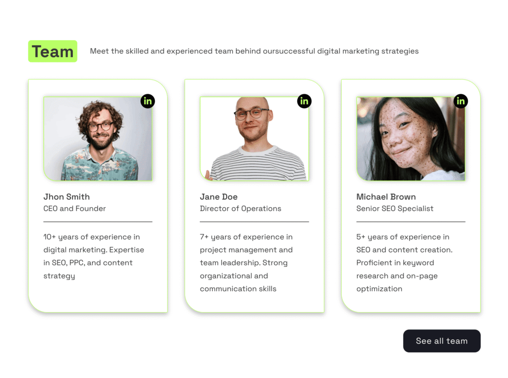Minimal team section with a modern layout