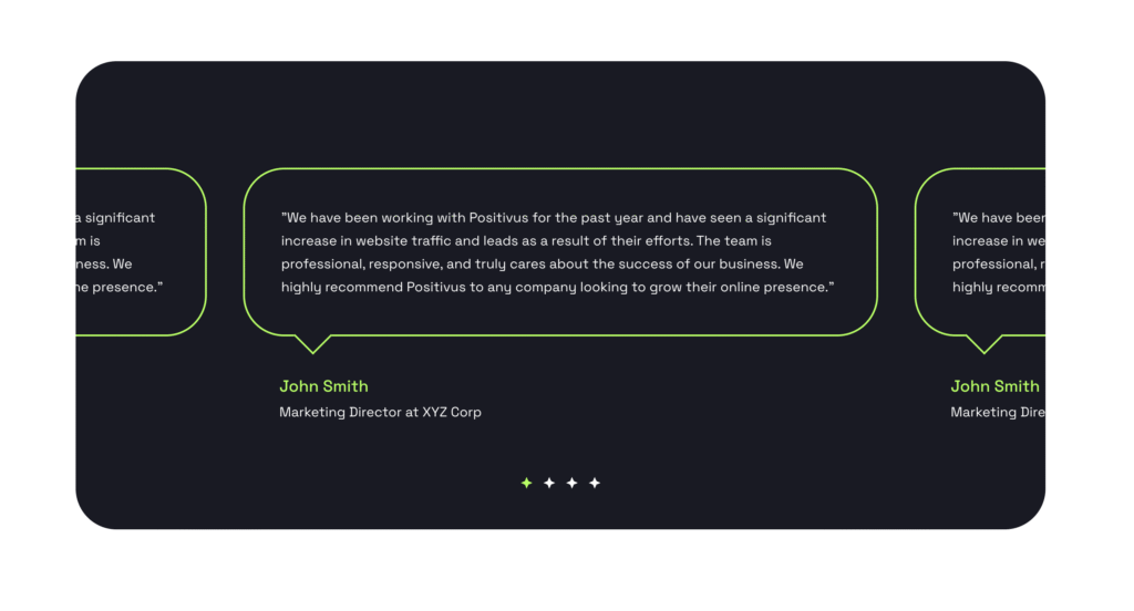 {"id":5785,"name":"positivus-testimonial","title":"Positivus Testimonial","date":"2026-02-04 11:48:29","date_formatted":"February 4, 2026","author":{"name":"AK_Developer_25","avatar":"https:\/\/secure.gravatar.com\/avatar\/4895fa216fc2f1ee16e6575899e50eb2388264a879a9791a3ad02c7bed840715?s=60&d=mm&r=g","url":"https:\/\/gallopbiz.in\/ak-dev"},"permalink":"https:\/\/gallopbiz.in\/ak-dev\/template\/positivus-testimonial\/","thumbnail":null,"bundles":[],"tags":[],"type":"section","content":[{"id":"f5160f","name":"section","parent":0,"children":["f26525"],"settings":{"_cssGlobalClasses":["uccubh"]},"label":"Testimonial"},{"id":"f26525","name":"container","parent":"f5160f","children":["eb4bbb"],"settings":{"_cssGlobalClasses":["lnzige"]}},{"id":"eb4bbb","name":"slider-nested","parent":"f26525","children":["6eb171","1885a1","f99f19","583575"],"settings":{"pagination":true,"_cssGlobalClasses":["khbrmr"],"perMove":"1","direction":"ltr","type":"loop","perPage":"1.5","focus":"center","autoplay":true,"gap":"40","height":"60vh","perPage:mobile_landscape":"1","perMove:mobile_landscape":"1","height:mobile_landscape":"70vh","height:mobile_portrait":"100vh"},"themeStyles":[]},{"id":"6eb171","name":"block","parent":"eb4bbb","children":["9c10c5","54c0c0"],"settings":{"_cssGlobalClasses":["ctbvcb"]},"label":"Slide 1"},{"id":"9c10c5","name":"block","parent":"6eb171","children":["f80aaa","c58ec6"],"settings":{"_cssGlobalClasses":["sdqtuv"]}},{"id":"f80aaa","name":"text-basic","parent":"9c10c5","children":[],"settings":{"text":"\"We have been working with Positivus for the past year and have seen a significant increase in website traffic and leads as a result of their efforts. The team is professional, responsive, and truly cares about the success of our business. We highly recommend Positivus to any company looking to grow their online presence.\"","_cssGlobalClasses":["aecvfk"],"_zIndex":"1"}},{"id":"c58ec6","name":"block","parent":"9c10c5","children":[],"settings":{"_cssGlobalClasses":["zrplhy"]}},{"id":"54c0c0","name":"block","parent":"6eb171","children":["c70a2c","0043e3"],"settings":{"_cssGlobalClasses":["rjtcgq"]}},{"id":"c70a2c","name":"heading","parent":"54c0c0","children":[],"settings":{"text":"John Smith","tag":"custom","customTag":"span","_cssGlobalClasses":["zzxfuw"]}},{"id":"0043e3","name":"text-basic","parent":"54c0c0","children":[],"settings":{"text":"Marketing Director at XYZ Corp","_cssGlobalClasses":["pqlfxx"]}},{"id":"1885a1","name":"block","parent":"eb4bbb","children":["558018","e0202a"],"settings":{"_cssGlobalClasses":["ctbvcb"]},"label":"Slide 1"},{"id":"558018","name":"block","parent":"1885a1","children":["433ef8","42fabf"],"settings":{"_cssGlobalClasses":["sdqtuv"]}},{"id":"433ef8","name":"text-basic","parent":"558018","children":[],"settings":{"text":"\"We have been working with Positivus for the past year and have seen a significant increase in website traffic and leads as a result of their efforts. The team is professional, responsive, and truly cares about the success of our business. We highly recommend Positivus to any company looking to grow their online presence.\"","_cssGlobalClasses":["aecvfk"]}},{"id":"42fabf","name":"block","parent":"558018","children":[],"settings":{"_cssGlobalClasses":["zrplhy"]}},{"id":"e0202a","name":"block","parent":"1885a1","children":["d0e3cf","900d3e"],"settings":{"_cssGlobalClasses":["rjtcgq"]}},{"id":"d0e3cf","name":"heading","parent":"e0202a","children":[],"settings":{"text":"John Smith","tag":"custom","customTag":"span","_cssGlobalClasses":["zzxfuw"]}},{"id":"900d3e","name":"text-basic","parent":"e0202a","children":[],"settings":{"text":"Marketing Director at XYZ Corp","_cssGlobalClasses":["pqlfxx"]}},{"id":"f99f19","name":"block","parent":"eb4bbb","children":["eed1ec","3ee7ee"],"settings":{"_cssGlobalClasses":["ctbvcb"]},"label":"Slide 1"},{"id":"eed1ec","name":"block","parent":"f99f19","children":["07086b","1b194a"],"settings":{"_cssGlobalClasses":["sdqtuv"]}},{"id":"07086b","name":"text-basic","parent":"eed1ec","children":[],"settings":{"text":"\"We have been working with Positivus for the past year and have seen a significant increase in website traffic and leads as a result of their efforts. The team is professional, responsive, and truly cares about the success of our business. We highly recommend Positivus to any company looking to grow their online presence.\"","_cssGlobalClasses":["aecvfk"]}},{"id":"1b194a","name":"block","parent":"eed1ec","children":[],"settings":{"_cssGlobalClasses":["zrplhy"]}},{"id":"3ee7ee","name":"block","parent":"f99f19","children":["d6787a","37ee1e"],"settings":{"_cssGlobalClasses":["rjtcgq"]}},{"id":"d6787a","name":"heading","parent":"3ee7ee","children":[],"settings":{"text":"John Smith","tag":"custom","customTag":"span","_cssGlobalClasses":["zzxfuw"]}},{"id":"37ee1e","name":"text-basic","parent":"3ee7ee","children":[],"settings":{"text":"Marketing Director at XYZ Corp","_cssGlobalClasses":["pqlfxx"]}},{"id":"583575","name":"block","parent":"eb4bbb","children":["87a90d","fcfb9b"],"settings":{"_cssGlobalClasses":["ctbvcb"]},"label":"Slide 1"},{"id":"87a90d","name":"block","parent":"583575","children":["0cd060","5c720b"],"settings":{"_cssGlobalClasses":["sdqtuv"]}},{"id":"0cd060","name":"text-basic","parent":"87a90d","children":[],"settings":{"text":"\"We have been working with Positivus for the past year and have seen a significant increase in website traffic and leads as a result of their efforts. The team is professional, responsive, and truly cares about the success of our business. We highly recommend Positivus to any company looking to grow their online presence.\"","_cssGlobalClasses":["aecvfk"]}},{"id":"5c720b","name":"block","parent":"87a90d","children":[],"settings":{"_cssGlobalClasses":["zrplhy"]}},{"id":"fcfb9b","name":"block","parent":"583575","children":["9bbb4b","2120f3"],"settings":{"_cssGlobalClasses":["rjtcgq"]}},{"id":"9bbb4b","name":"heading","parent":"fcfb9b","children":[],"settings":{"text":"