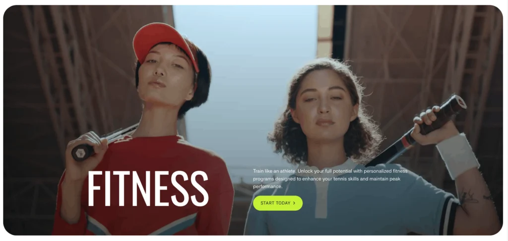 A section with a video background and a two-column layout, featuring a heading and text. This design is inspired by the Elysian Tennis Webflow template, with custom modifications and layout adaptations.