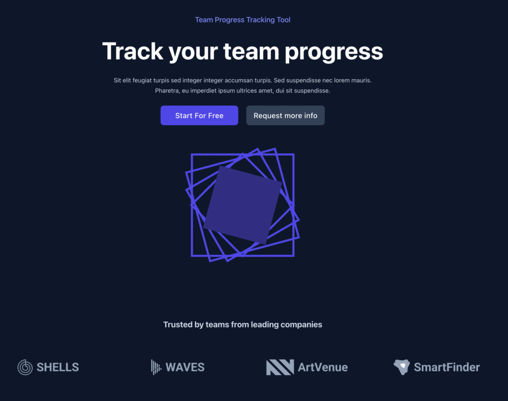 Hero section featuring a CTA and an animated SVG box containing multiple SVG elements.